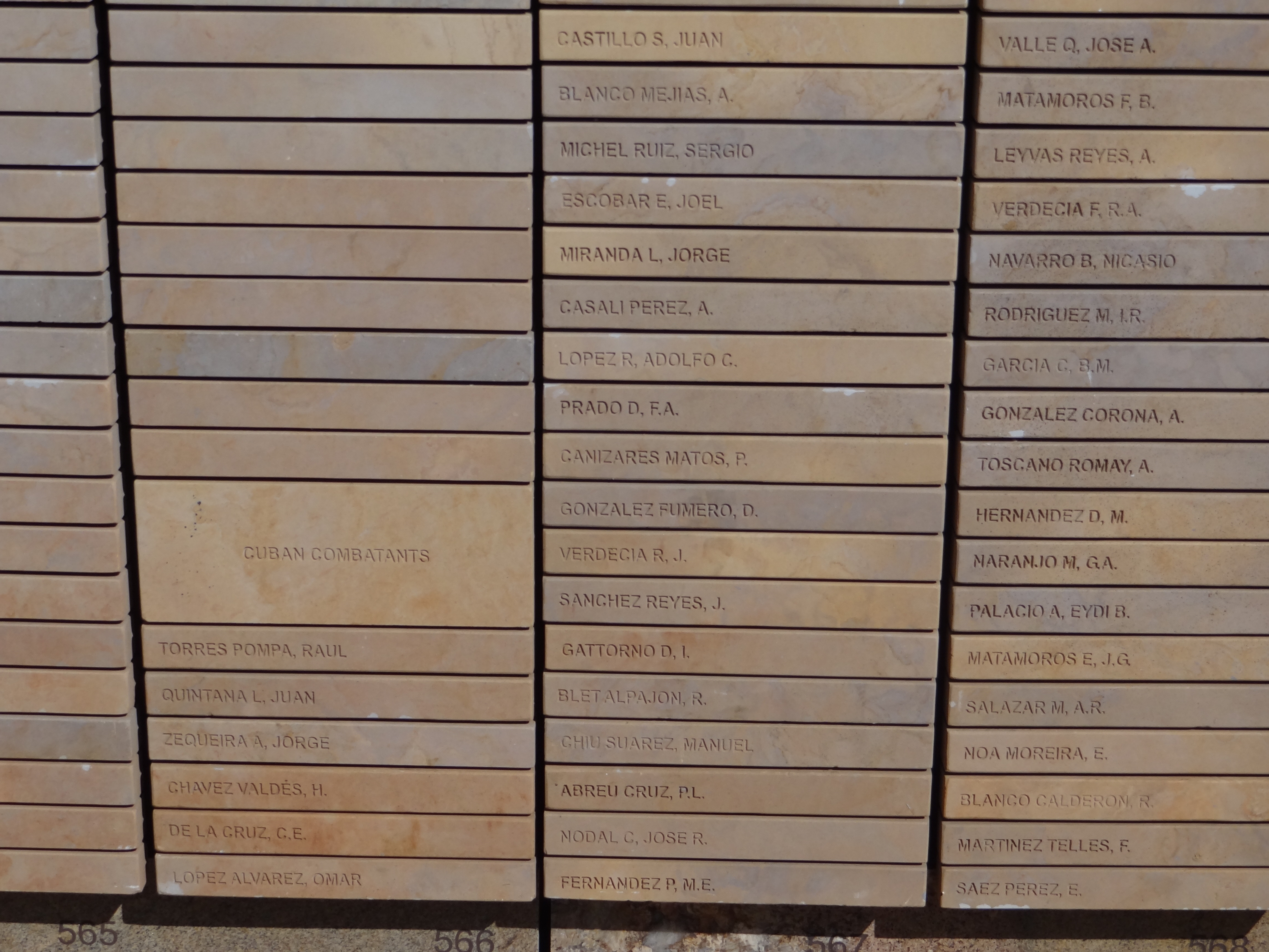 What was particularly interesting was how they listed the names, not just by a particular conflict, but by manner of death, by political or ethnic group, and by nation (for those who weren’t actually from SA but died  helping in their struggle for freedom, as was the case for the long list of Cuban combatants). The guide was an essential component of our understanding of the symbolism and history involved.