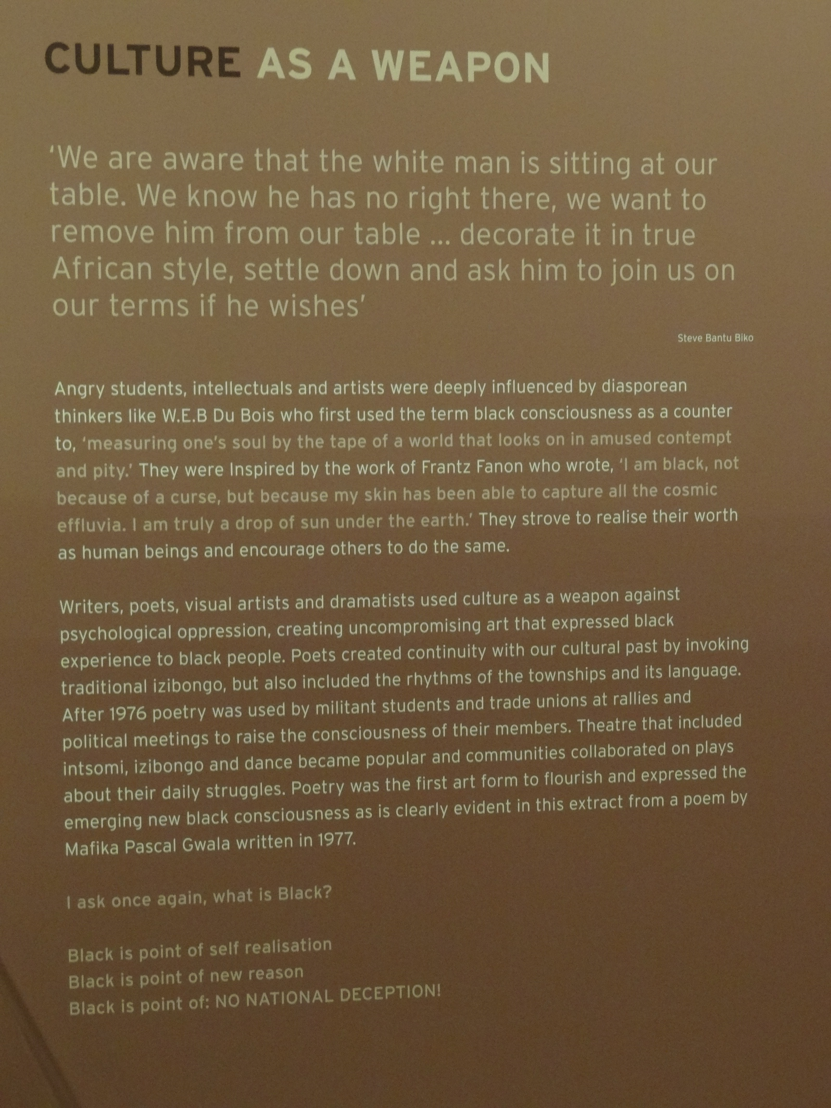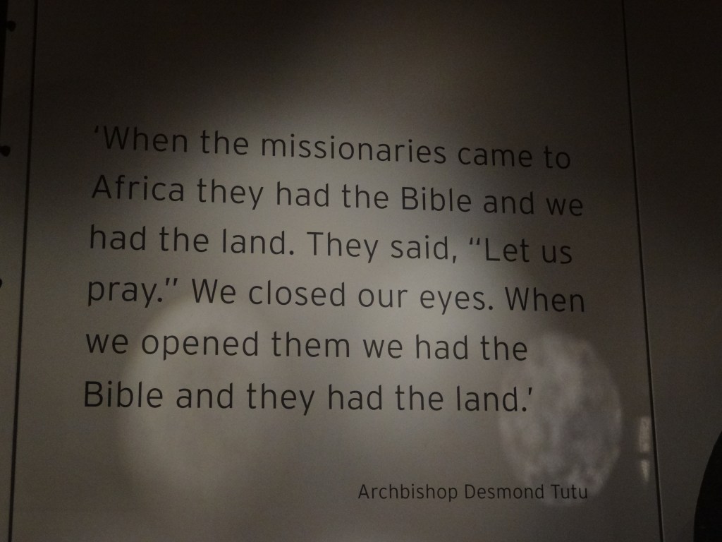 The Apartheid Museum was also incredible though, I must say. It was quite dense in terms of the volume of material presented. If you’re like me and have to read everything and look at every picture, caption, and video clip, it will definitely take you longer than the estimated 2 – 2.5 hours. I think we were in there for over 4 hours, and probably would’ve been there longer had E not started getting tired and had part of the museum not been under renovation. I didn’t take any photos of the museum because it wasn’t permitted, and honestly, that would’ve just prolonged my stay. While it was thorough, it was difficult to digest everything. I feel the need to read a book, or several, about South African history .